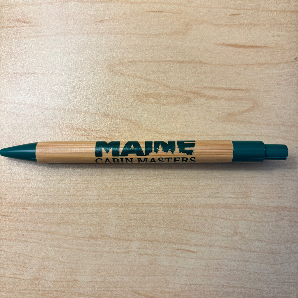 Bamboo wooden pen with Maine Cabin Masters logo.