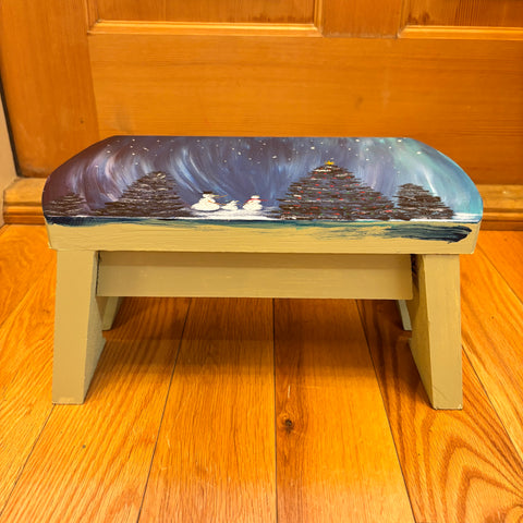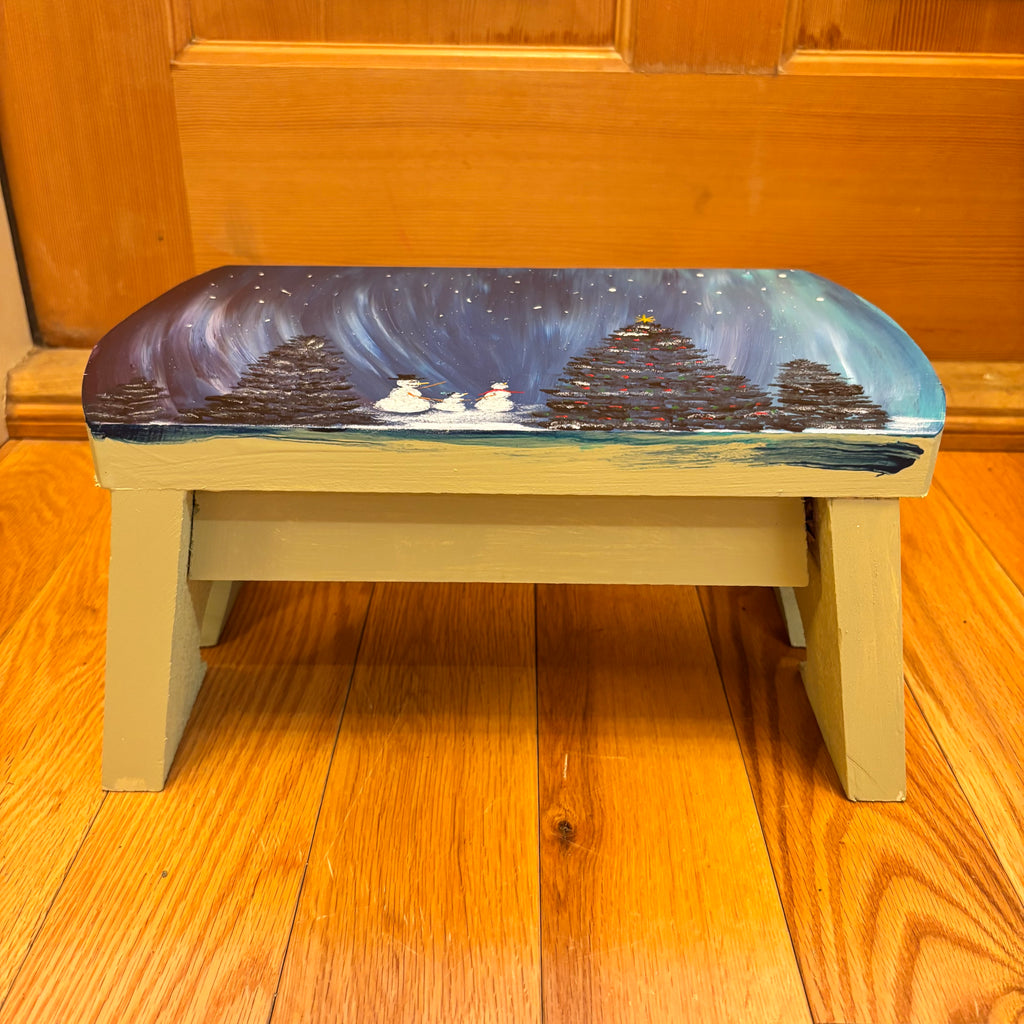 Benny and Christine colab! Benny makes the bench from Maine Cabin Masters' scrap wood & Christine, the painter, paints them by hand with Maine Cabin Masters leftover paint.