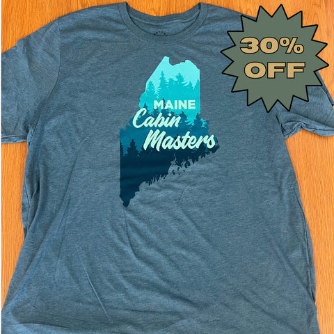 Specialty T Shirt - Maine Cabin Masters with Trees in Maine